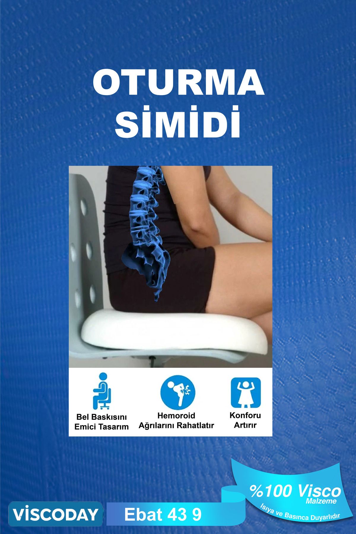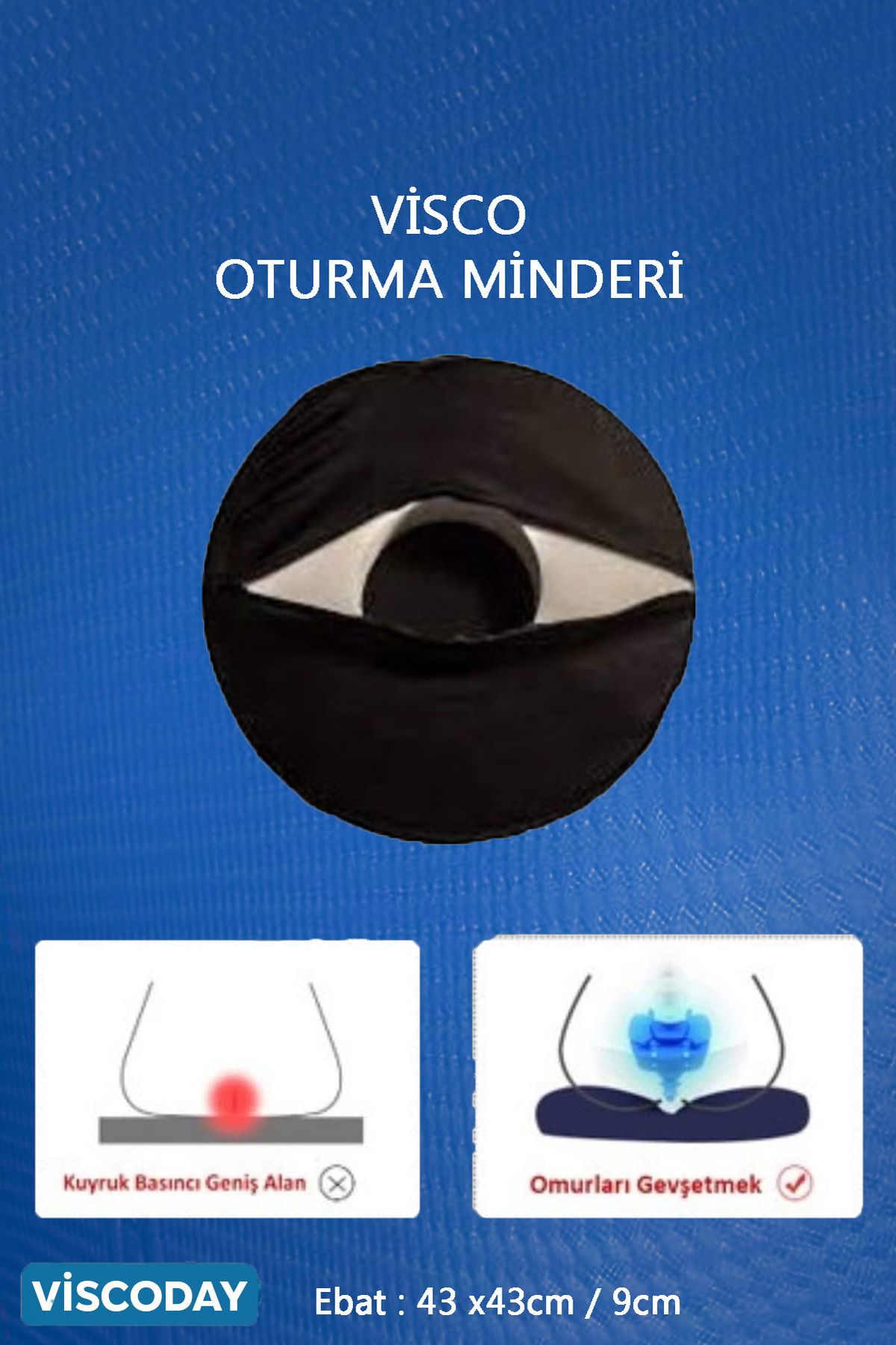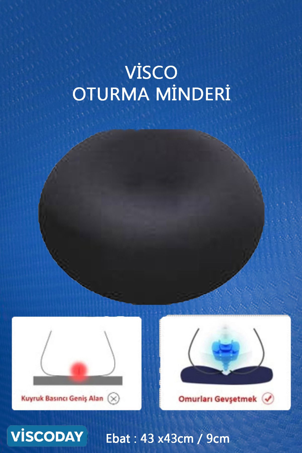 Visco Oturma Simidi Ortopedik, Yastık Konforlu Ve Rahatlatıcı 43 X 43 X 9, D Model